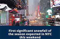Prve značajne snježne padavine ove sezone prognoziraju se za New York City ovog vikenda. Meteorolozi najavljuju da će visina sniježnog pokrivača biti od 2,5 do 7,5sm.