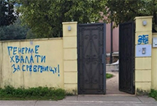 Jutros je na zidovima Ambasade Bosne i Hercegovine u Podgorici osvanuo grafit na kojem piše “Generale, hvala ti za Srebrenicu”. Takođe, kako se može vidjeti u bobjavi na mreži X iscrtan je i krst sa četiri ocila. O pomenutom događaju još uvijek se niosu oglasili iz Ambasade BiH u Crnoj Gori. Ovim se otvoreno veliča genocid počinjen u julu 1995. godine i ratni zločinac Ratko Mladić, pravosnažno osuđen pred Međunarodnim krivičnim sudom u Hagu.(CdM)